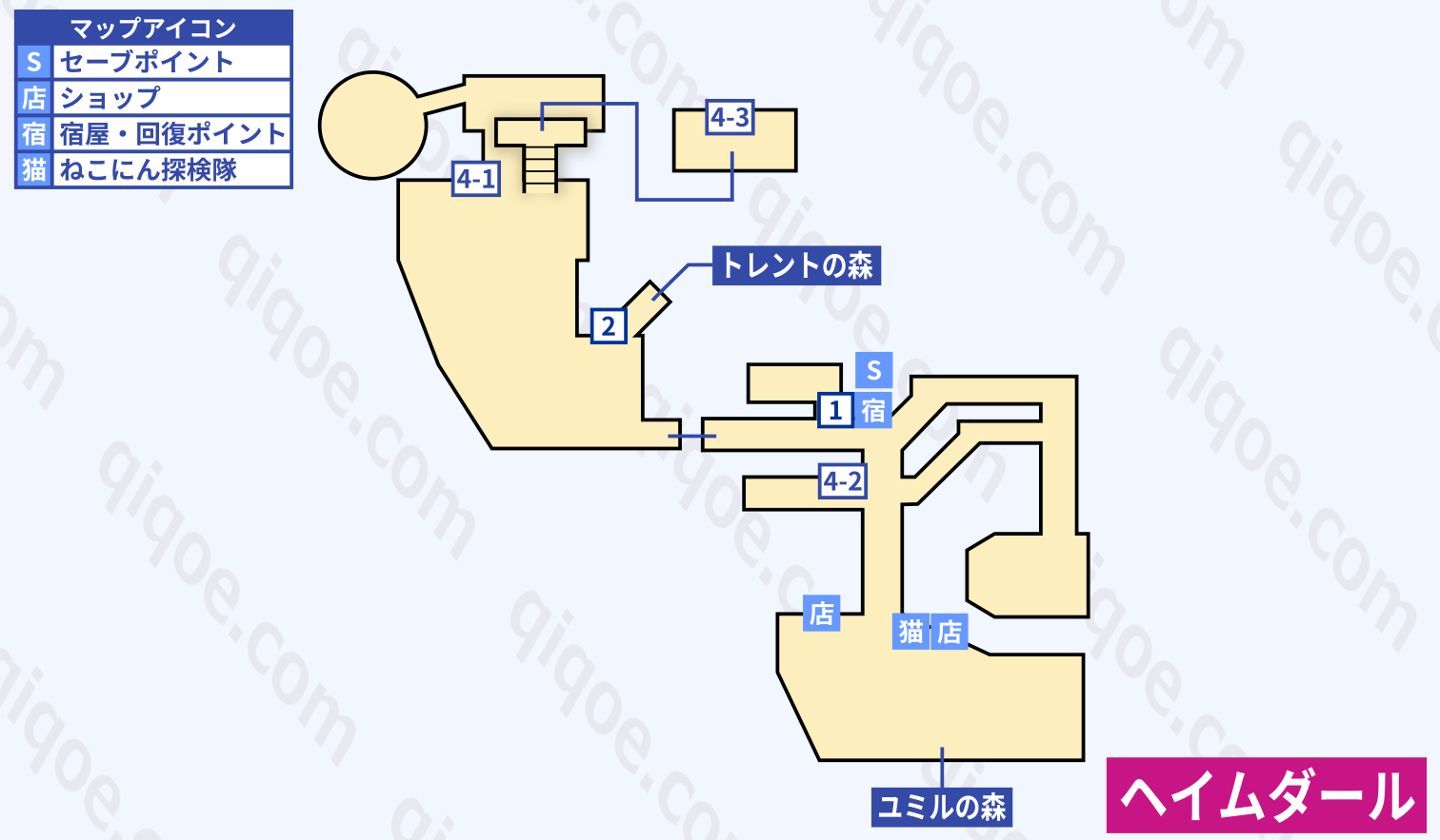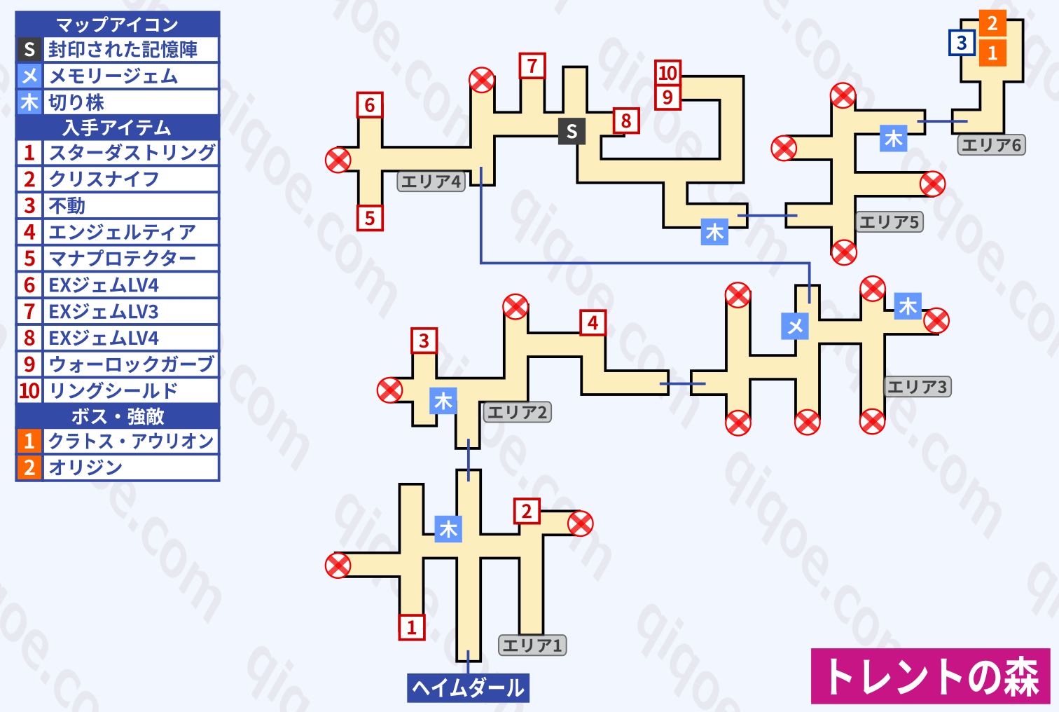 トレントの森はギミックのない迷路です。以下の順でエリア6へ進んでください(奥は画面の上方向)。