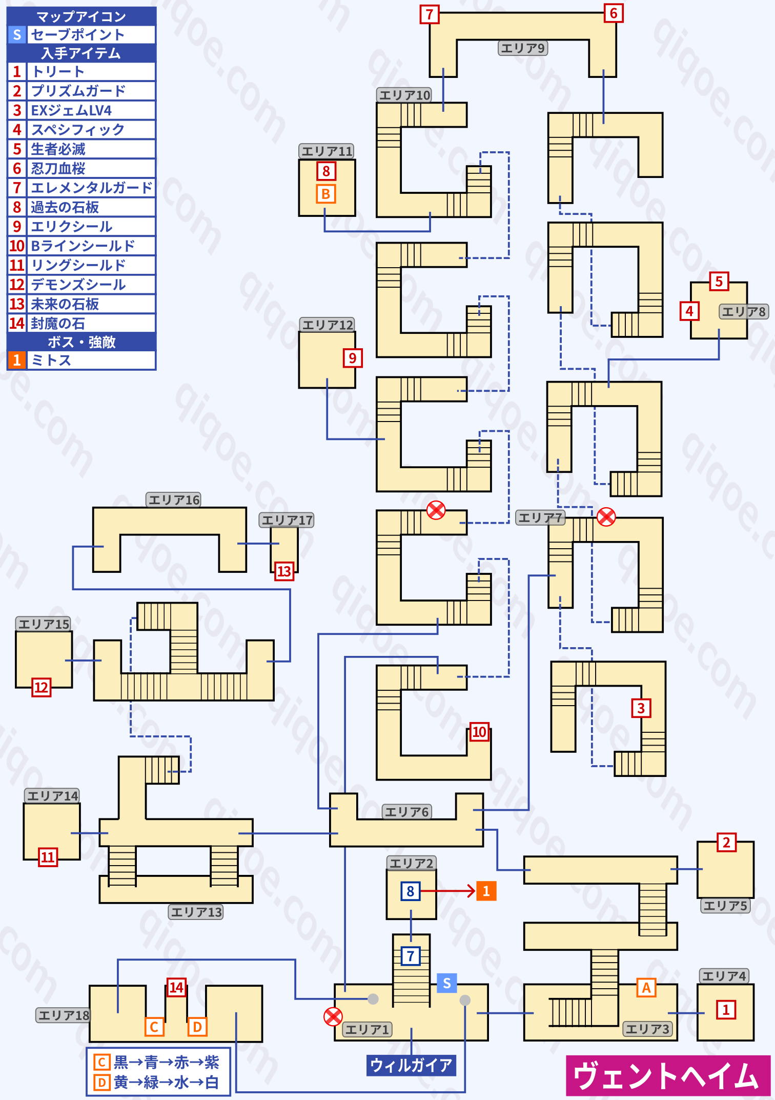 | デリス・カーラーン~クリアまでのチャート |