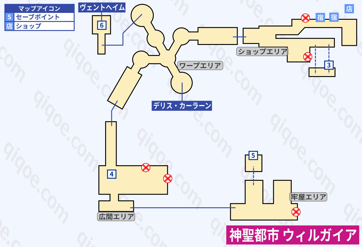 6. 突き当たりから奥へ進み、2本目の右の通路を右へ進みエリア6へ。