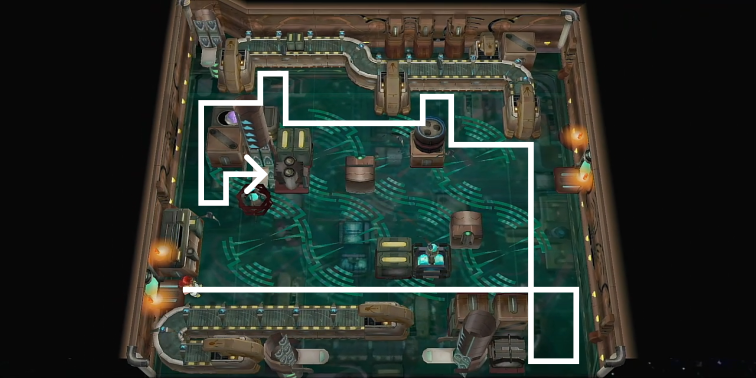 4 | ソーサラーリング変換装置で電気に性質を変え、レイビット2体をスイッチ部分で感電状態にさせて扉を開く |