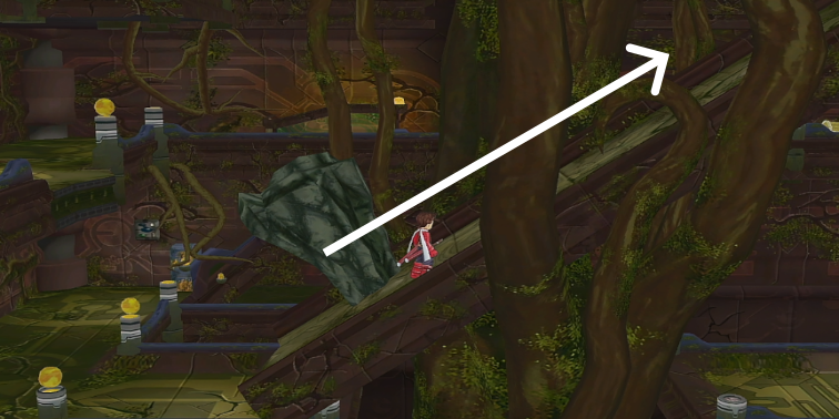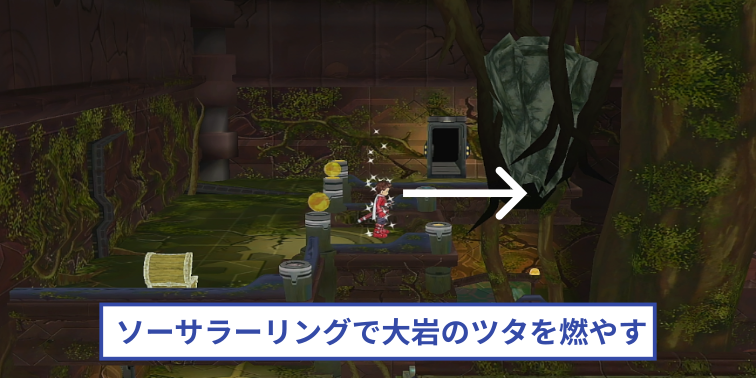 これにより、大岩の重みと釣り合い、操作キャラが右に進んでもシーソーが傾かずにエリア3中層へ移動できるようになります。