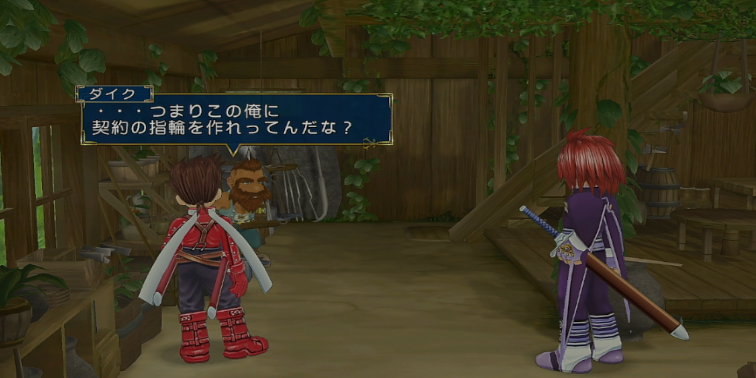 ヘイムダール脱出後、シルヴァラントのイセリアの西にあるダイクの家での会話イベント後に、貴重品「エターナルリング」と一緒にロイドが獲得します。