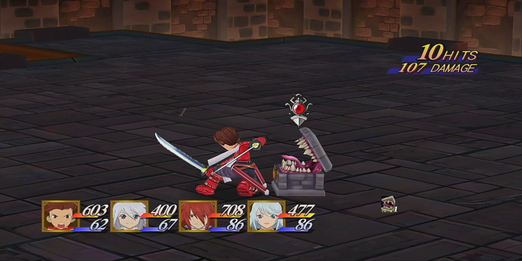 特に警戒すべきは、彼のHPが少なくなると一度だけ使用する ガード不能なハンマー攻撃 です。この攻撃は防御が効かないため、ハンマーを振り上げたら必ず距離を取って回避してください。クラトス参戦後は、彼の回復術「ファーストエイド」や「アップルグミ」を使いながら、ガードと反撃を繰り返して撃破しましょう。