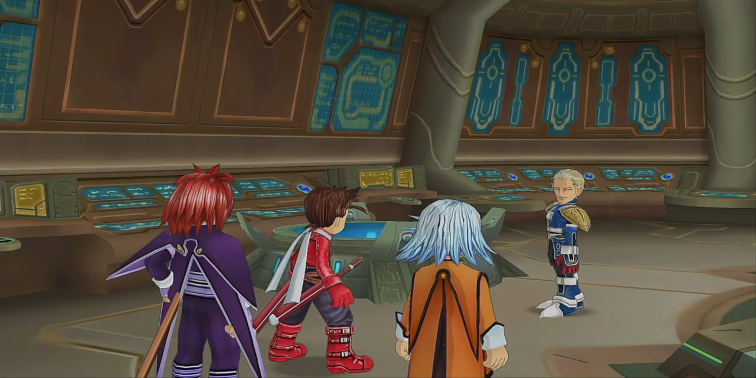 ブロックシフトポールで緑の球を12時方向に移動させて、ユアンの部屋でボス「ボータ」を倒してシルヴァラントベースから脱出する