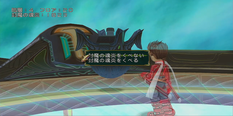 フロア20からワープポイントで移動する際に、英雄ミトス、英雄クラトス、英雄ユアンの3体と3対3のパーティバトルとなります。