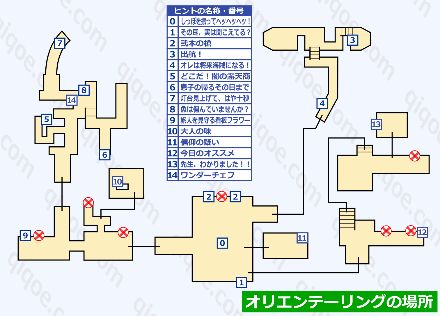 1 | ![]() 広場の左下にいる兵士に話しかけてミニゲーム「オリエンテーリング」を行う |