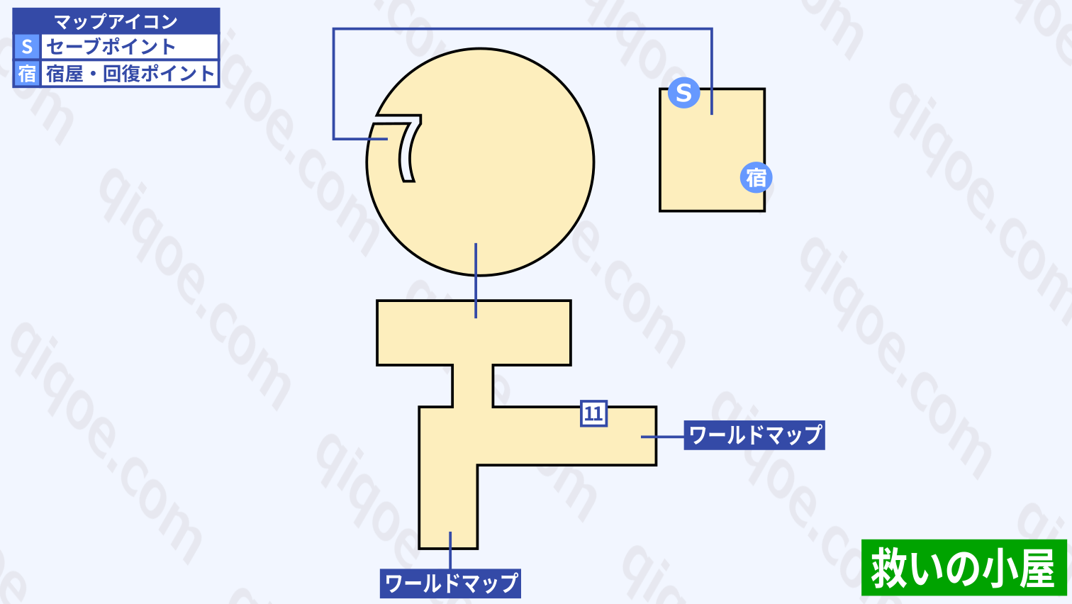 11 | ![]() 救いの小屋の右の入口付近の犬に「モン」と命名する |