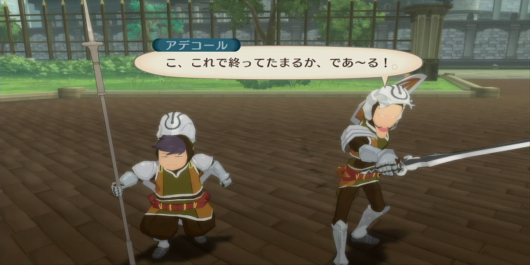 彼らはザーフィアス城の兵士という設定で、剣や槍を用いた通常攻撃と技で攻撃を仕掛けてきます。ガードをしていれば威力はそれほど高くありませんが、二人同時に相手をするため、囲まれないように注意する必要があります。